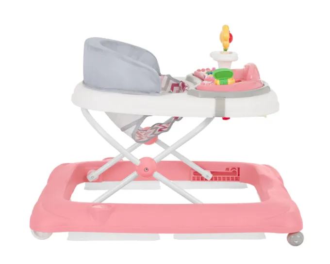 Scaunul moale cu spătar înalt oferă confort și susținere în timpul utilizării. Roțile frontale pivotante la 360 de grade și roțile din spate fixe asigură o manevrabilitate ușoară și o bună stabilitate. Siguranța este garantată de cele 6 dopuri de cauciuc sub bază, care protejează copilul de orice pericole.