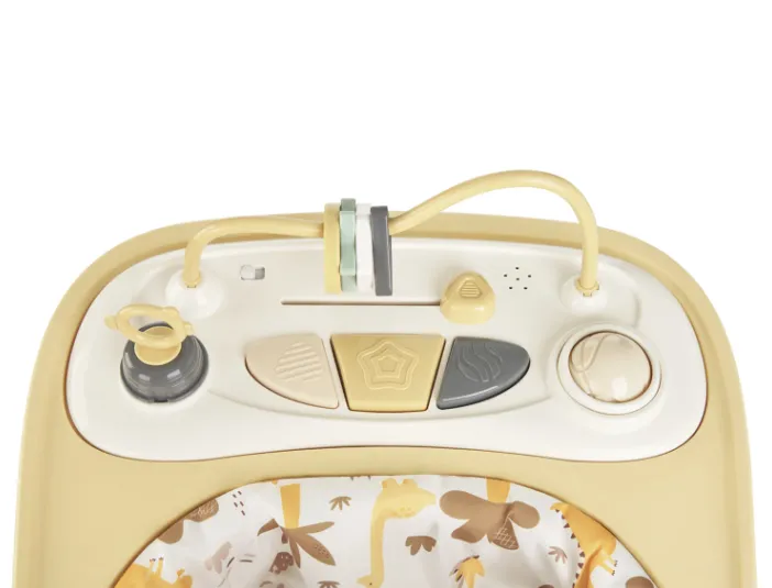Distracție interactivă: Include panou muzical detașabil cu mecanisme de blocare și buton on/off, oferind momente plăcute de joacă și învățare.