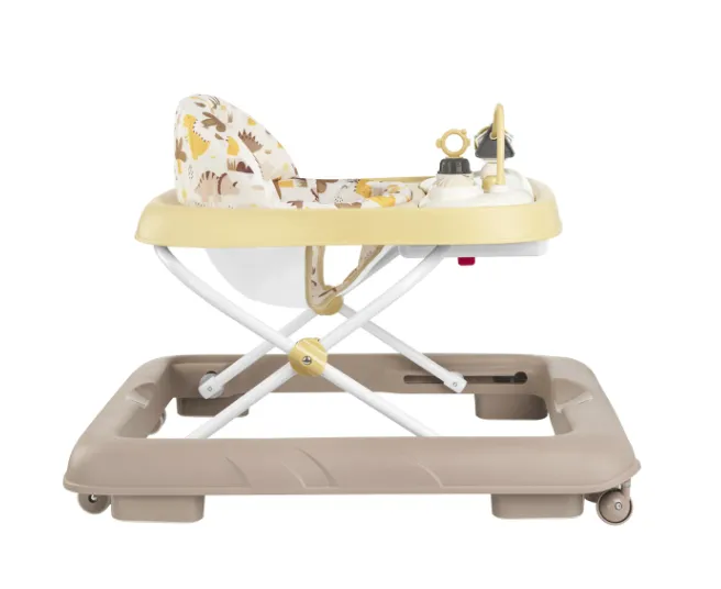 Roți universale pentru manevrare ușoară: 2 roți frontale PP permit glisarea lină pe diferite suprafețe, îmbunătățind experiența de mers a copilului.