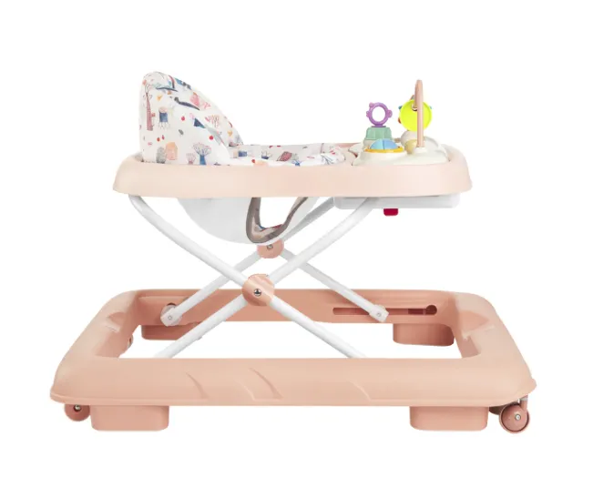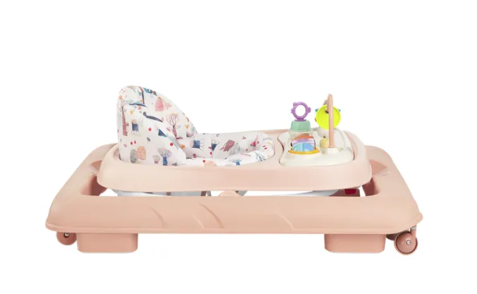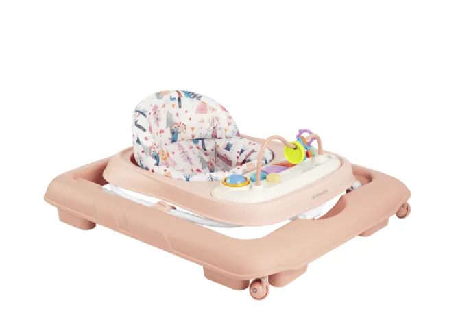 Roți universale pentru manevrare ușoară: 2 roți frontale PP permit glisarea lină pe diferite suprafețe, îmbunătățind experiența de mers a copilului.