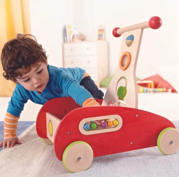 Antepremergător magic este completat cu detalii utile în dezvoltarea bebelușilor – roți dințate multicolore rotative, un labirint, mărgele, mânerul comod ușor în manevrarea jucăriei. Antepremergătoarul poate fi folosit și pe post de cărucior de joacă. Roțile sale sunt acoperite cu cauciuc, astfel nu lasă urme pe podea. Datorită ampatamentului larg, premergătorul este stabil.