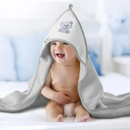 Realizat din bumbac 100% de înaltă calitate, prosopul absoarbe perfect apa și protejează capul umed al bebelușului împotriva frigului. Croiala lejeră nu restricționează mișcările copilului după baie.