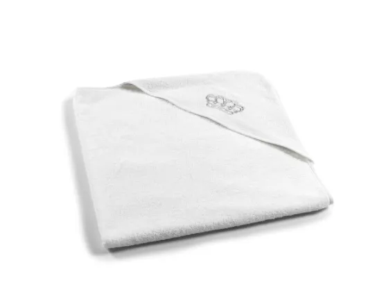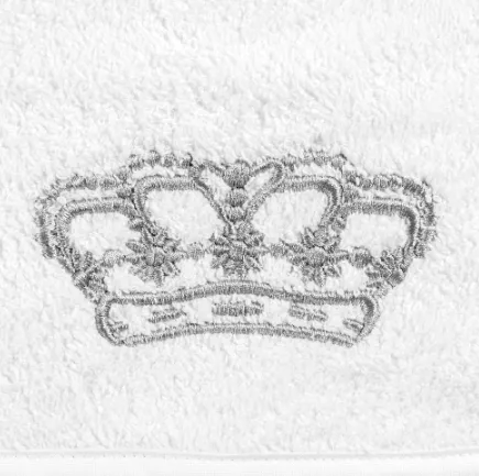 Gluga este decorată cu o broderie elegantă în formă de coroană, oferindu-i un aspect stilat și rafinat. Prosopul este ideal pentru utilizare după baie, oferind confort și căldură.
