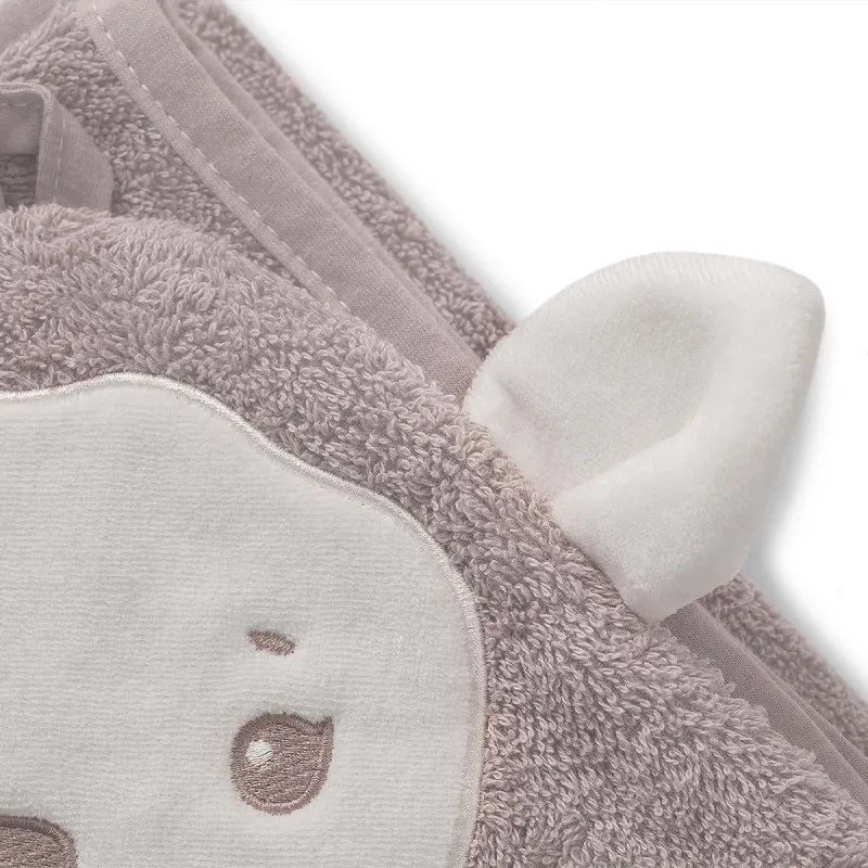 Prosopul moale și natural Muzzle va transforma baia într-un joc captivant. Gluga cu o față drăguță și urechi voluminoase este atât un detaliu practic, cât și drăguț care îți ridică moralul.