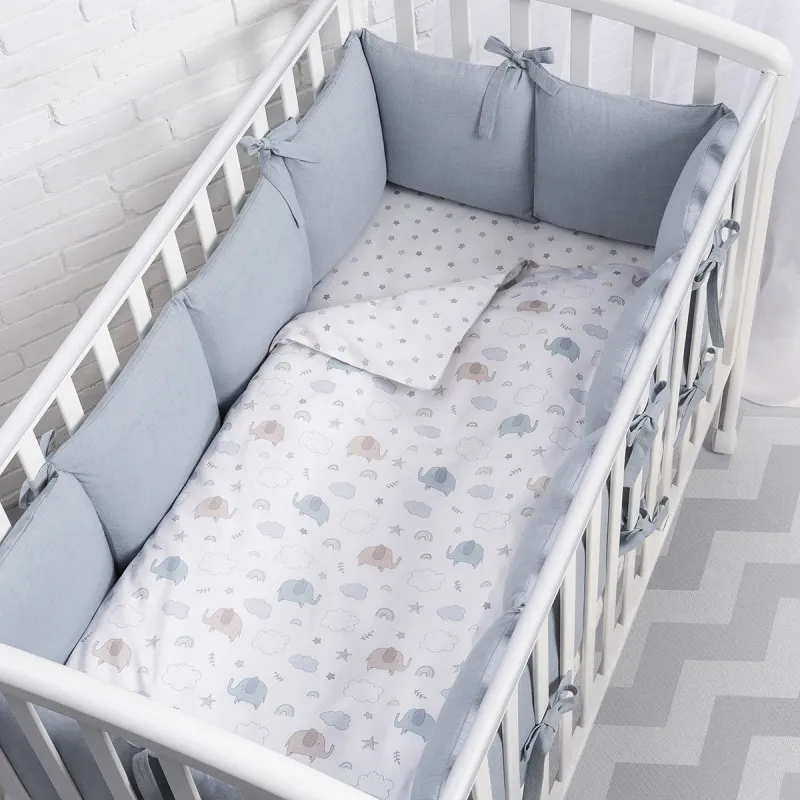 Pentru un plus de confort, fiecare parte a barei de protecție are o husă detașabilă cu fermoar. Acum puteți spăla doar partea exterioară a barei de protecție fără a afecta umplerea. Și în interiorul barei de protecție există material Hollcon ecologic, hipoalergenic și ușor. Îsi păstrează perfect forma și nu se încurcă, chiar și atunci când bebelușul începe să se miște activ în pătuț.