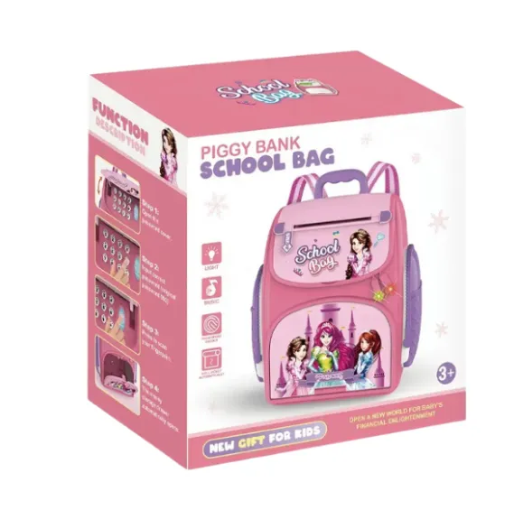 Acest ghiozdan adorabil nu este doar un accesoriu la modă, ci și un seif sigur pentru păstrarea banilor. Ghiozdanul este echipat cu o funcție de cod PIN, efecte de lumină și sunet, făcându-l unic și captivant pentru copil. Este un instrument excelent pentru primele lecții de educație financiară, învățând copilul despre gestionarea banilor și elementele de bază ale securității.