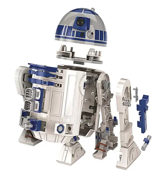 Robotul de construit Clementoni Star Wars R2-D2 este un set STEM interactiv pentru asamblarea celebrului droid din universul Star Wars. Setul include peste 80 de piese, din care copilul poate construi modelul R2-D2 cu aspect realist, efecte luminoase și sunete originale inspirate din saga.