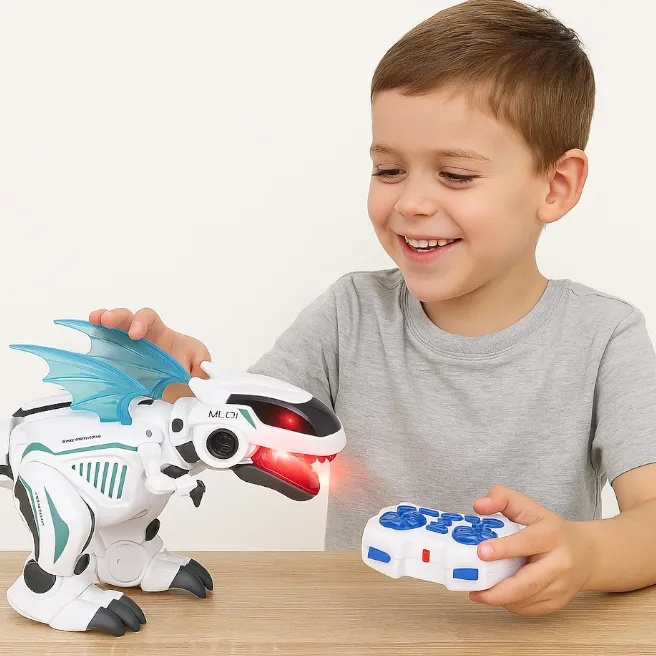 Robotul-dinozaur cu telecomandă este o jucărie impresionantă și interactivă, care combină un aspect puternic cu funcții captivante. Copilul poate controla dinozaurul de la distanță, inventa bătălii și aventuri, dezvoltând imaginația și coordonarea. Designul realist și elementele mobile transformă jocul într-o experiență plină de energie.