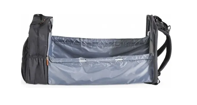 Acest produs unic este extrem de util și necesar pentru fiecare părinte. Este multifunctionala si ofera 2 produse in 1 - o geanta si un pat portabil pentru bebelusi. Are un buzunar frontal cu fermoar și buzunare laterale cu depozitare elastică, unde poți depozita tot ce ai nevoie. Accesoriile incluse cu produsul - două mânere scurte și două mânere lungi, cleme pentru atașarea ușoară la mânerul căruciorului, deschidere largă a buzunarelor principale pentru un acces mai ușor.