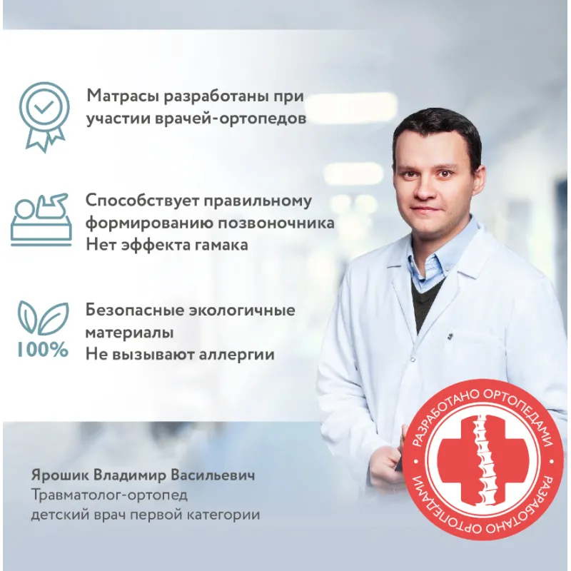 - Preocuparea pentru siguranță: La dezvoltarea saltelei au participat medici pediatri calificați, sa ținut cont de caracteristicile de dezvoltare ale copiilor de 3-7 ani. S-au folosit materiale certificate de înaltă calitate. Salteaua a trecut cu succes teste în funcție de 16 criterii (de exemplu, absența formaldehidelor, fenolilor, stirenului).