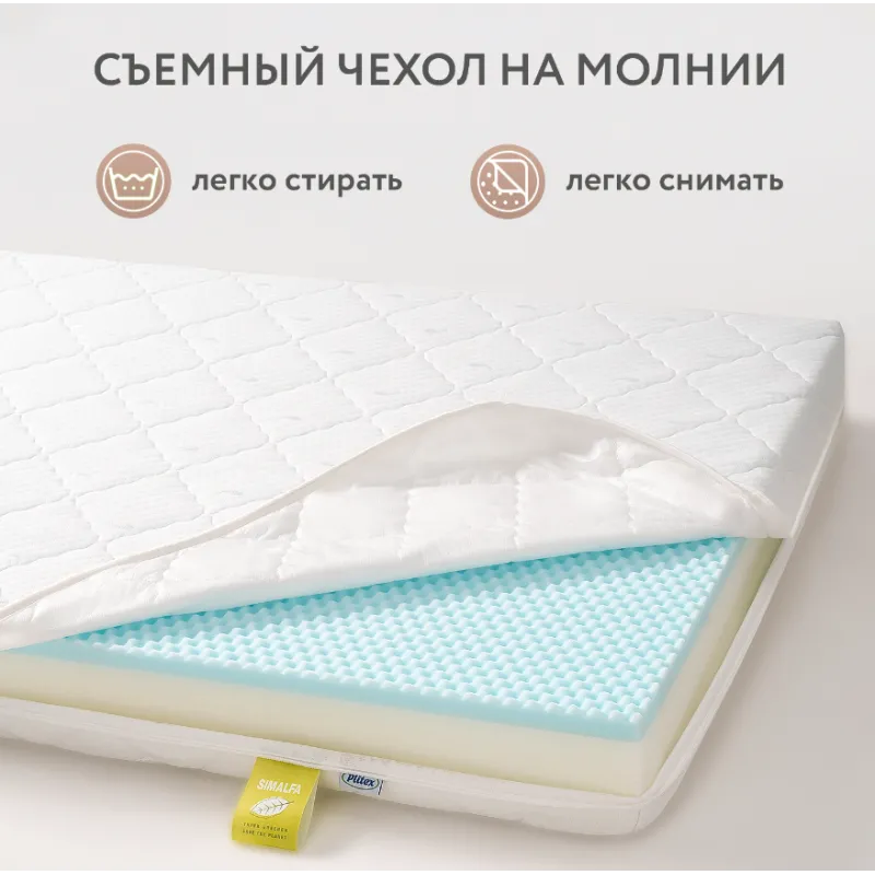 HUSĂ DETASABILĂ din țesătură matlasată cu două straturi. Suprafața moale și anti-alunecare oferă copilului tău un somn confortabil. Husa este bine ventilată și copilul nu va transpira pe o astfel de saltea. Fermuarul este cusut pe trei laturi ale husei, fiind mai usor de scos si pus dupa spalare.