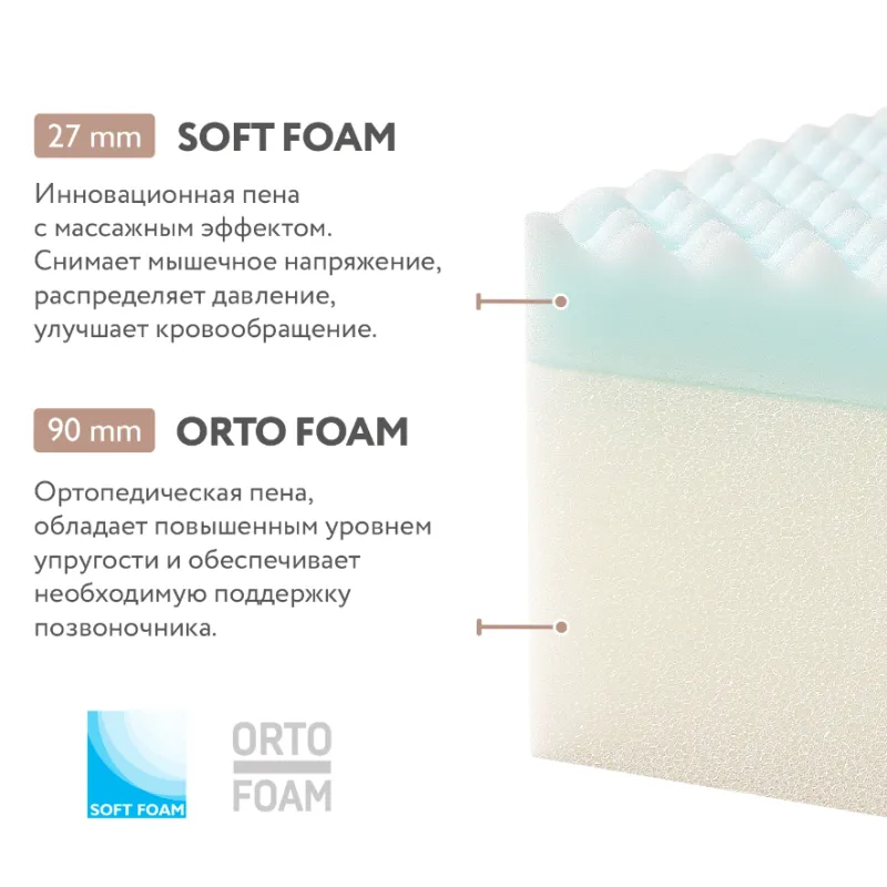 SPUMĂ MOALE - (27 mm) Spumă inovatoare cu efect de masaj, ameliorează tensiunea musculară, distribuie presiunea și îmbunătățește circulația sângelui.