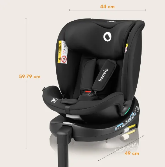 Lionelo Navy i-Size Black Onyx oferă durabilitate de lungă durată, siguranță excepțională și confort superior. Crește odată cu copilul tău, asigurând transportul sigur și confortabil pe întreaga perioadă obligatorie de utilizare a scaunului auto (de la 40 la 150 cm în înălțime). Este echipat cu o bază rotativă EasyTurn de 360°, care oferă acces facil la scaun, simplifică ajustările centurii și reduce semnificativ efortul asupra spatelui atunci când așezi sau scoți copilul din scaun. Este potrivit pentru instalare cu fața sau spatele la direcția de mers, folosind sistemul ISOFIX cu un picior de stabilizare. Este important de menționat că copiii cu o înălțime de până la 105 cm pot fi transportați în siguranță cu spatele la direcția de mers! Această poziție a scaunului auto este considerată cea mai sigură pentru copil, așa că este benefic să o folosești cât mai mult posibil.