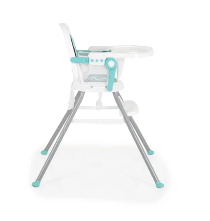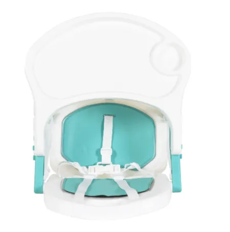 Scaunul are un design foarte practic, în culorile alb și mentă. Greutatea maximă recomandată: 15 kg.