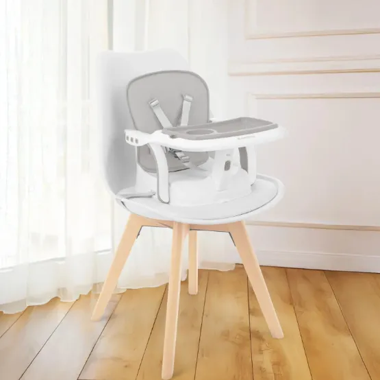 Designul versatil al lui CHEWY permite ridicarea copilului la înălțimea potrivită a mesei sau utilizarea ca scaun jos confortabil pentru hrănire, în funcție de nevoile copilului.