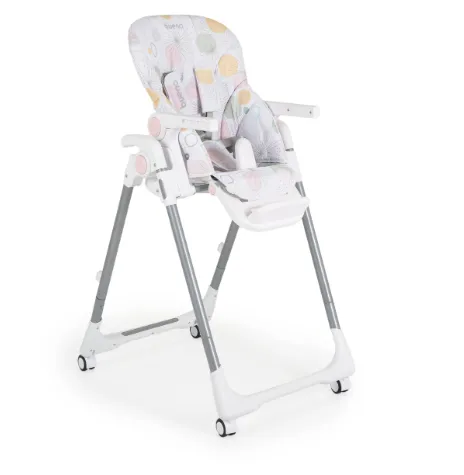 Scaunul înalt Bueno este extrem de versatil. Are 6 pozitii pentru înălțime, 5 poziții pentru spătar, 3 pozitii pentru suport pentru picioare, 3 poziții pentru tava pe etaje, sistem de siguranță în 5 puncte cu hamuri reglabile.