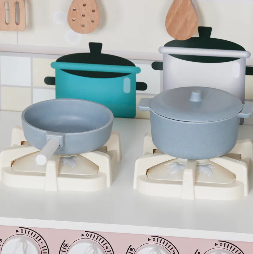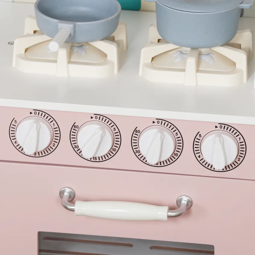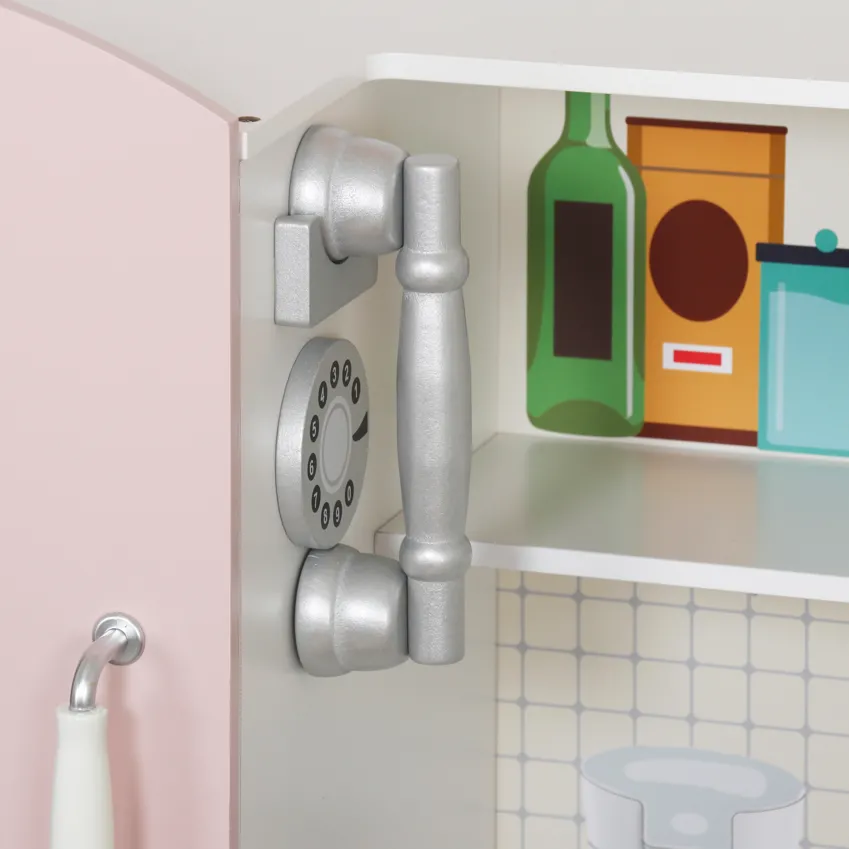 Funcții: imită aragazul, cuptorul, chiuveta și spațiile de lucru — ideală pentru jocuri de rol.