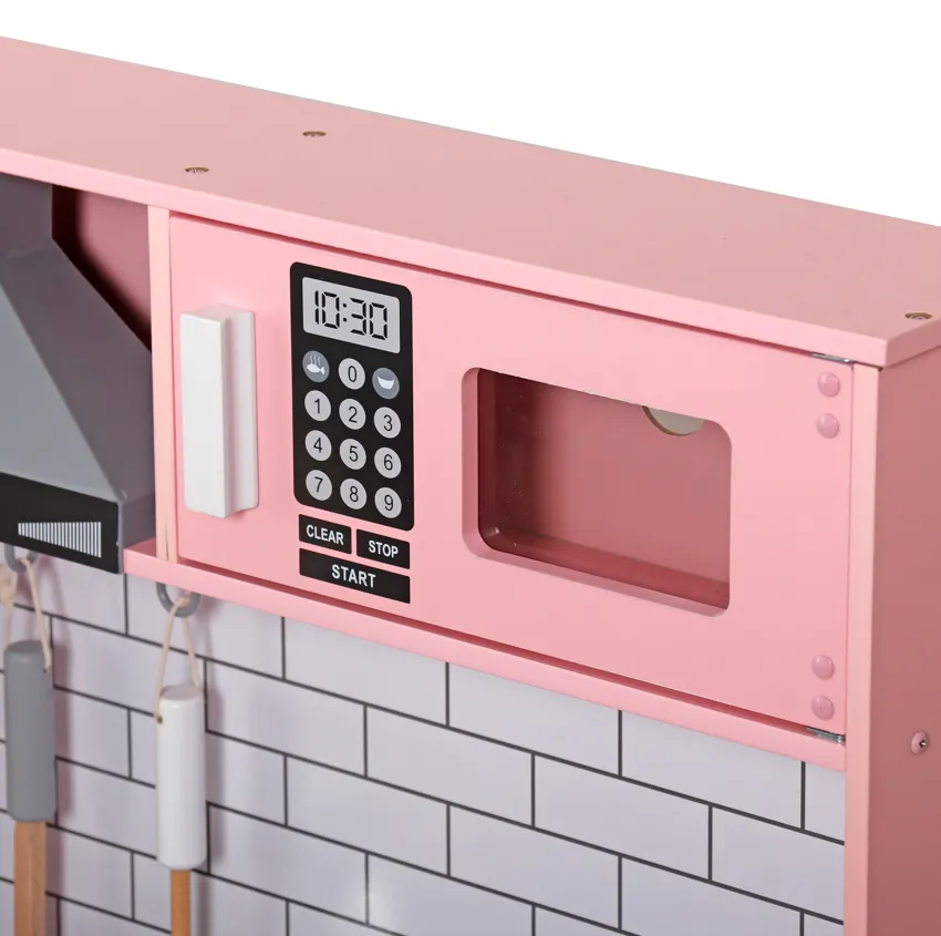 Bucătărie din lemn cu accesorii și funcții, 94*31*94 cm, roz pudrat, W10C991B