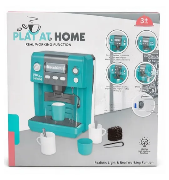 Setul de joacă Play At Home este o cafetieră de jucărie viu colorată pentru copii, care îi permite copilului să se simtă ca un adevărat barista și să inventeze multe scenarii distractive de joacă acasă. Setul este realizat într-un stil modern și este completat cu accesorii care fac joaca și mai interesantă și realistă.