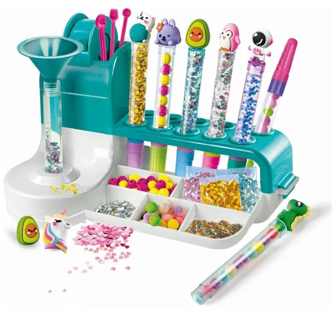 Setul „Creează-ți propriile pixuri” este un kit creativ original care permite copilului să realizeze singur instrumente de scris unice. În timpul activităților creative, copiii asamblează și decorează pixurile după propriul gust, experimentând cu culori și elemente decorative. Setul dezvoltă imaginația, atenția la detalii și face procesul de învățare a scrisului mai interesant și distractiv.