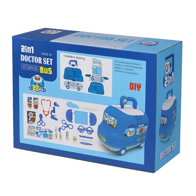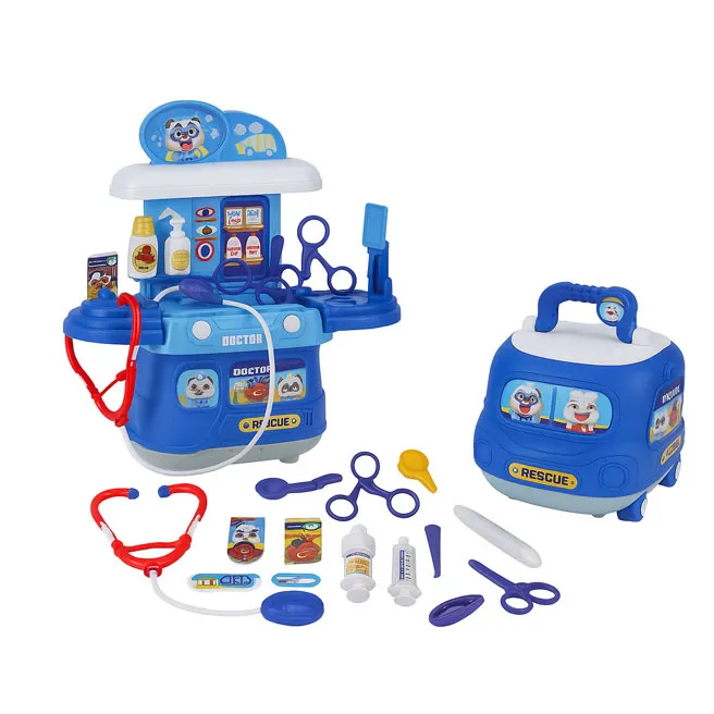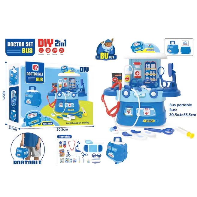 Setul de joacă „Ambulanța” este un set captivant și funcțional pentru micii doctori, care combină două forme de joacă: masa medicală și valiza portabilă. Setul are forma unui autobuz în miniatură, se transformă ușor și se transportă comod datorită mânerului. Setul include toate accesoriile necesare pentru jocul de rol — stetoscop, seringă, termometru, ochelari, foarfece și alte instrumente.