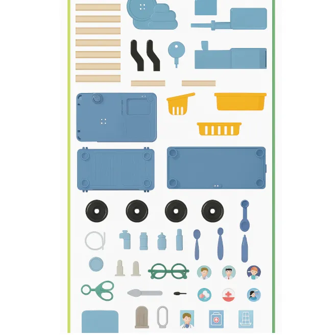Setul doctorului din 65 de elemente — un joc educativ captivant pentru micii medici! Cu ajutorul numeroaselor instrumente incluse, copiii pot învăța despre îngrijirea sănătății, pot examina jucăriile-pacienți și pot inventa propriile scenarii medicale. Setul stimulează imaginația, empatia și dorința de a ajuta, oferind ore întregi de joacă creativă și distractivă.