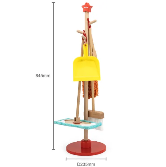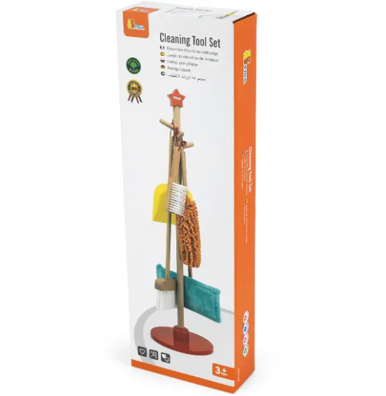 Setul Viga 44567 pentru menaj format din 5 piese, cu suport va ajuta micuțul dumneavoastră să învețe cu ușurință regulile de ordine și curățenie în propria cameră. Acum, activitatea de curățare devine o joc distractiv, iar perii comode și realiste din acest set devin ajutoare de încredere pentru cel mic.
