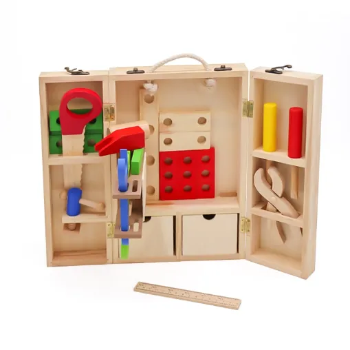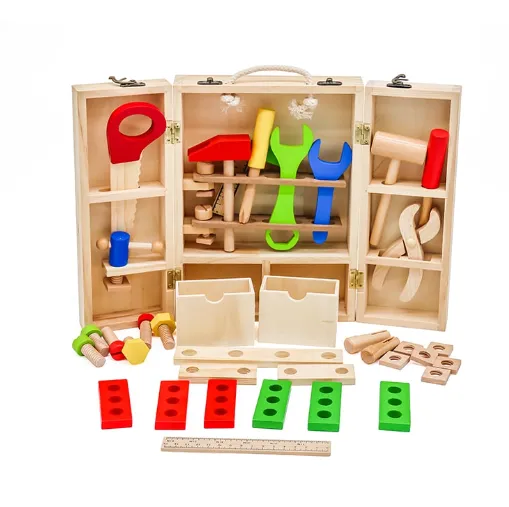 Jocul cu unelte stimulează creativitatea, imaginația și învățarea prin experiență practică. Lemnul natural și finisajele netede fac ca jucăria să fie sigură și plăcută la atingere, iar culorile atractive captează atenția copiilor.