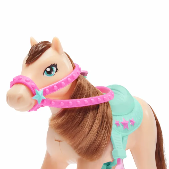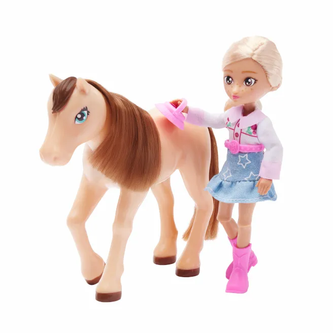 Charlie este gata de aventuri în pălăria ei de cowboy, cizme și rochie în stil western, care se scoate ușor. Îndoaie-i mâinile și picioarele pentru a o urca pe șaua lui Daisy – păpușile Hey Bestie sunt foarte mobile, astfel încât pot ține pasul cu imaginația copiilor!