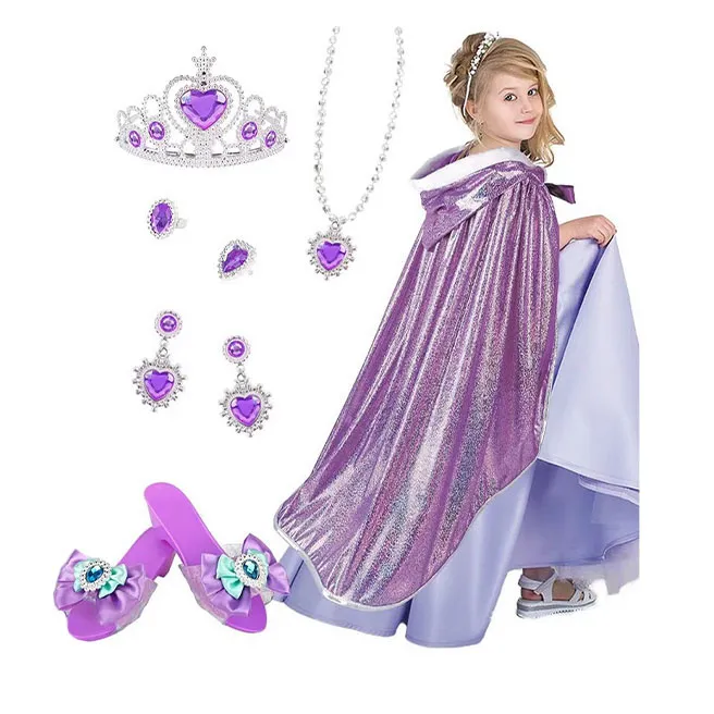 Setul prințesei cu accesorii — setul ideal pentru micile iubitoare de aventuri fabuloase! Setul include toate elementele necesare pentru a crea un look magic: rochie, mantie, diademă, cercei, colier și pantofi. Accesoriile strălucitoare, cu paiete și pietre, vor conferi imaginii eleganță și stil. Acest set va inspira copilul dumneavoastră să se joace o mulțime de jocuri magice și îl va ajuta să se simtă ca o adevărată prințesă!