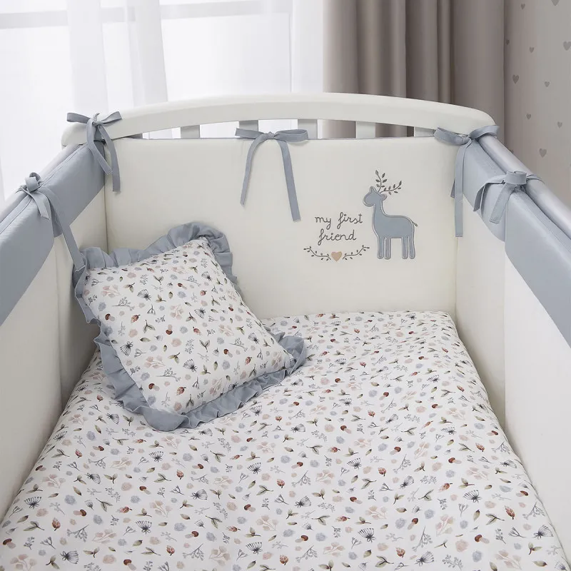 Setul elegant Perina Little Forest este potrivit pentru orice tip de interior, are nuanțe naturale și culori pastelate care oferă confort și rafinețe. Texturile diferite ale lenjeriei de pat și ale laturilor formează o combinație interesantă ce oferă libertate imaginației.