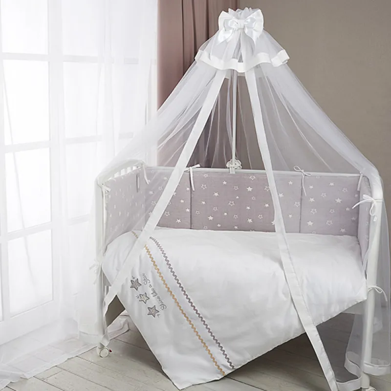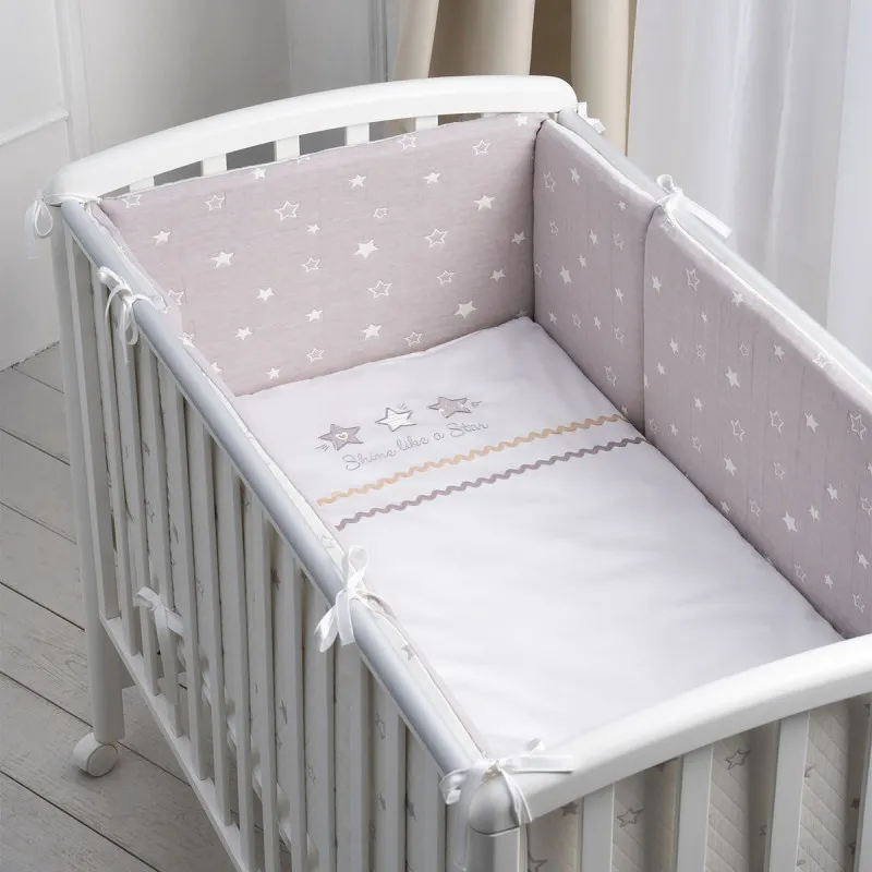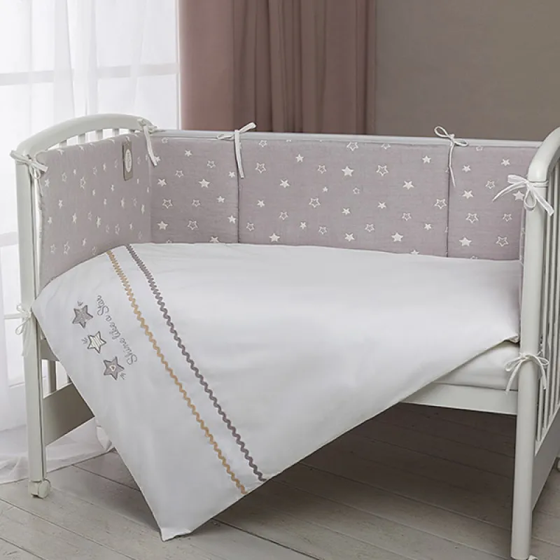 Setul elegant Perina Toys Stele este potrivit pentru orice tip de interior, are nuanțe naturale și culori pastelate care oferă confort și rafinețe. Texturile diferite ale lenjeriei de pat și ale laturilor formează o combinație interesantă ce oferă libertate imaginației.