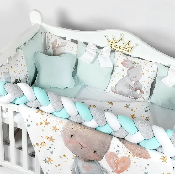 Lenjerie de pătuț 8 piese PernaMea Cosiță Iepuraș Turcoaz