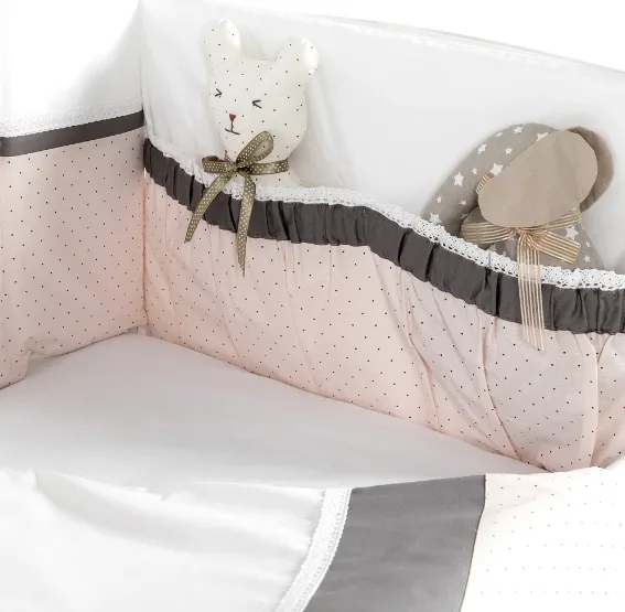 Lenjerie de pătuț 8 piese PernaMea Renaissance Buline Roz
