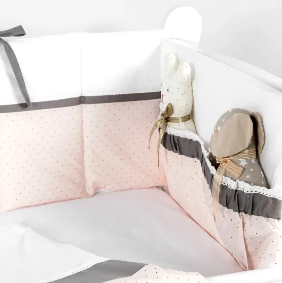 Lenjerie de pătuț 8 piese PM Renaissance Buline Roz