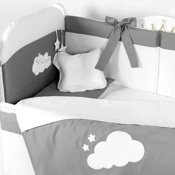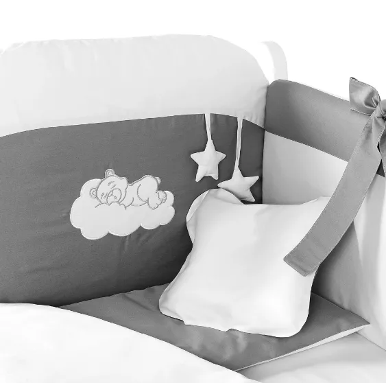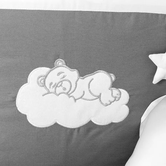 Lenjerie de patut 8 piese PM Satin Urs Gri