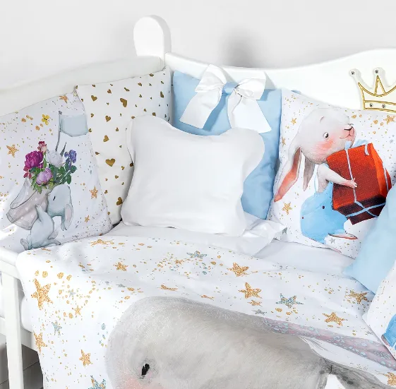 Apărători laterale: Perne 12 buc. de 30x35 cm fiecare, pentru protecție optimă. Aceste perne se pot aranja pe marginea pătuțului pentru a oferi o siguranță maximă copilului.