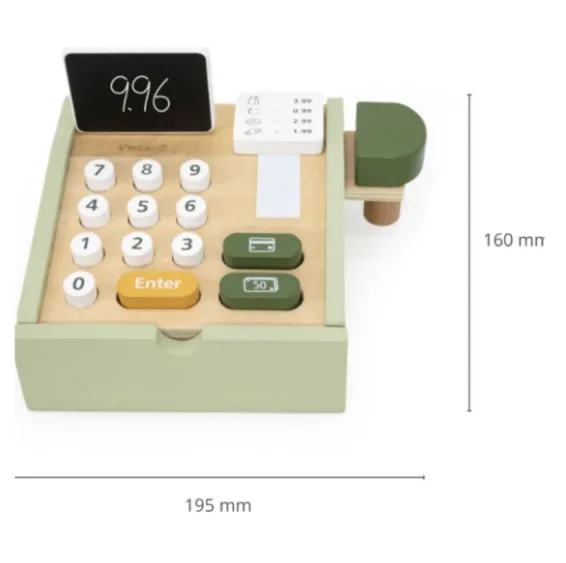 Casă de marcat de la Viga Toys este cadoul ideal pentru micii iubitori de jocuri de rol. Cu această casă de marcat din lemn, copilul se poate bucura de o experiență captivantă, jucând rolul de casier sau vânzător într-un supermarket, magazin de haine sau florărie. Jocul dezvoltă imaginația și creativitatea, sprijină învățarea numerelor, utilizarea banilor și îmbogățește abilitățile sociale. Setul contribuie la dezvoltarea gândirii logice și a abilităților motorii fine, ajutând copilul să înțeleagă valoarea banilor și bazele matematicii.