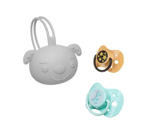 Suportul pentru suzetă în formă de cap de cățeluș este ideal pentru depozitarea și transportarea suzetelor în timpul plimbărilor sau călătoriilor. Datorită dimensiunilor sale compacte, încape ușor într-o geantă, rucsac sau buzunar. Un mâner special permite atașarea comodă la cărucior, pătuț sau scaun auto. Suportul poate conține 2 suzete. Culorile neutre se potrivesc oricărui cărucior și genți.