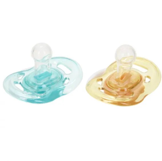 Formă anatomică: Suzetele imită forma anatomică a sânului, oferind bebelușului o senzație naturală și confortabilă în timpul suptului, contribuind astfel la dezvoltarea sănătoasă a maxilarului și a gurii.