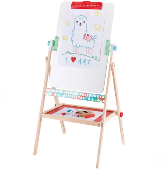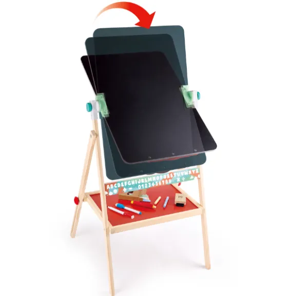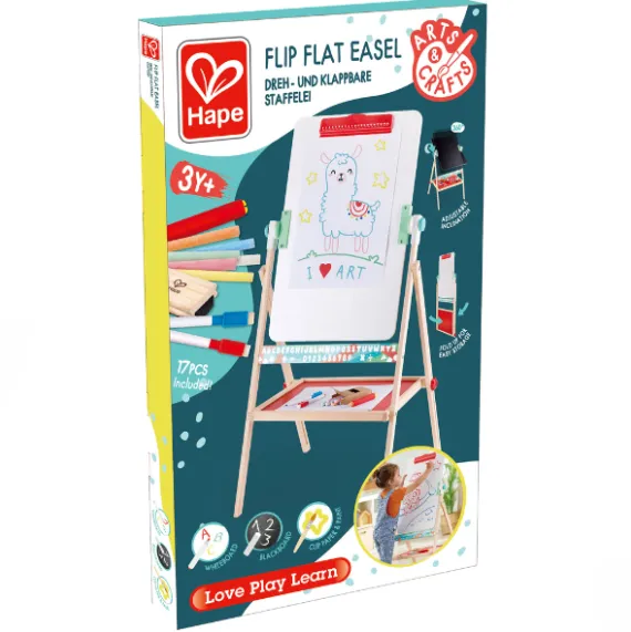 Un șevalet cu două fețe de la HAPE, unde copiii pot desena, picta sau pur și simplu își pot lăsa imaginația să zboare! Pur și simpluîntoarceți pentru a alege o parte a tablei sau atașați o bucată de hârtie pe care să desenați. Suportul de hârtie fixează diferite dimensiuni de hârtie!