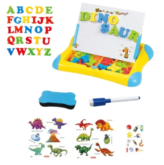 Include litere magnetice, carduri cu dinozauri și marker cu burete