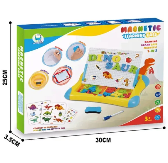 Tabla magnetică educativă 2 în 1 este un set distractiv și util pentru dezvoltarea timpurie a copiilor. Literele colorate ale alfabetului englez și cardurile cu dinozauri transformă învățarea într-un joc captivant. Ideală atât pentru acasă, cât și în călătorii, îi ajută pe copii să învețe literele, să formeze cuvinte, să deseneze și să scrie.