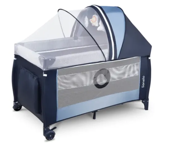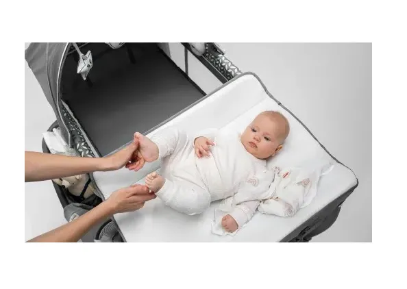 Pătuțul are 2 înălțimi de saltea, precum și o intrare laterală cu fermoar și pereți din plasă ventilați pentru a asigura o circulație adecvată a aerului.