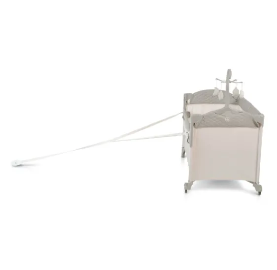 Tarcul are roti pentru o miscare mai comoda, precum si un set compact de accesorii pentru bebelus, care poate fi folosit atat acasa cat si la plimbare sau pe drum. Salteaua este foarte comoda, de aproximativ 3 cm grosime. Arena se dezvolta la dimensiunile compacte si are sistem de pliere dubla.