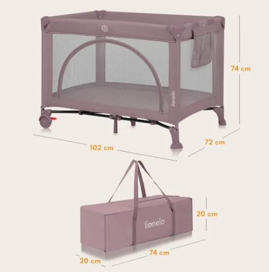 Lionelo Laura este un pătuț compact cu funcție de țarc, creat special pentru locuințe mai mici și pentru economisirea spațiului. Este suficient de spațios și complet funcțional, dar ușor mai scurt – încape acolo unde nu este loc pentru un pătuț mai mare și este ușor de manevrat. Ușor și comod de transportat (în geanta inclusă).