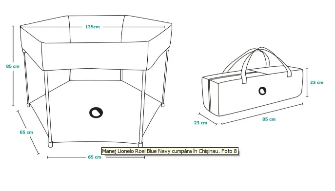 Lionelo Roel are un sistem de pliere compact și ușor de utilizat, astfel încât să funcționeze perfect atât acasă, cât și în călătorii. În acest sens, produsul este livrat cu o geantă de călătorie cu un mâner la îndemână pentru transport.