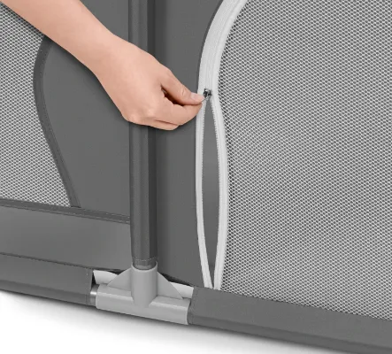 Tarc-ul dispune de două deschideri laterale cu fermoar, facilitând accesul copilului și permițându-i să intre și să iasă independent. Astfel, părinții nu trebuie să ridice copilul peste margini de fiecare dată, reducând efortul fizic. Materialele ușor de curățat mențin igiena spațiului de joacă. Datorită funcției de pliere rapidă și dimensiunilor compacte atunci când este pliat, tarc-ul poate fi ușor transportat și depozitat, inclusiv într-o geantă de transport inclusă, fiind perfect pentru călătorii sau organizarea spațiului de acasă.