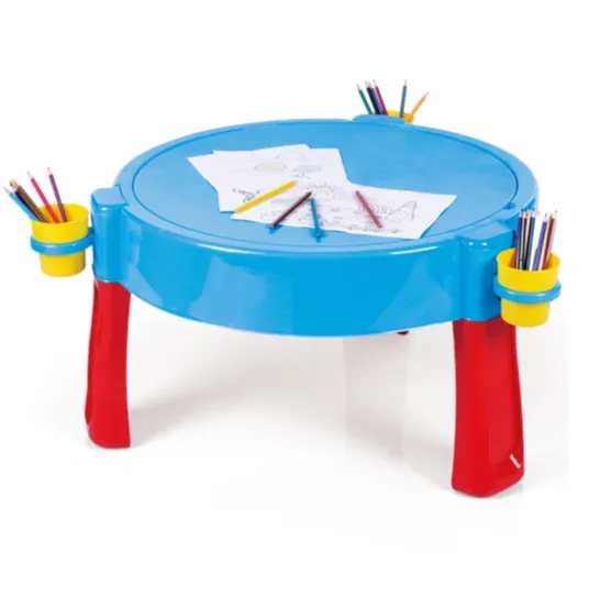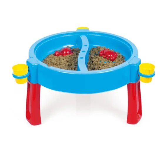Măsuța de activități cu nisip și apă este concepută pentru a oferi copiilor ore întregi de distracție creativă și educativă. Designul circular permite accesul din toate părțile, fiind ideală pentru joaca individuală sau în grup.