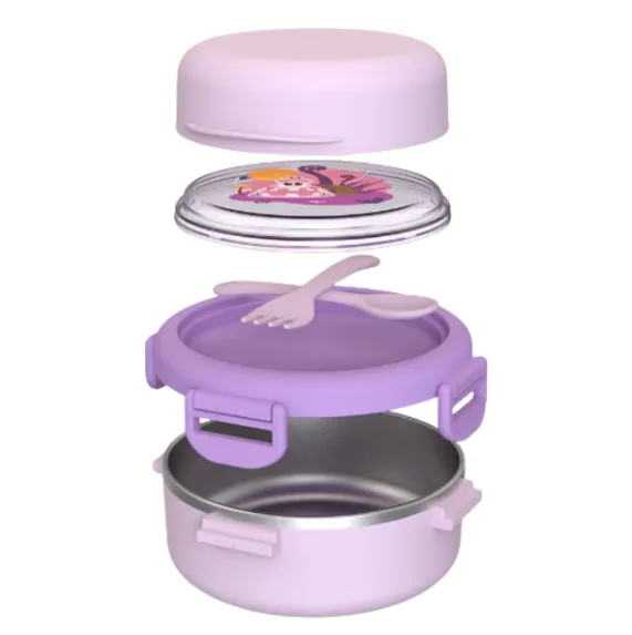 Setul include o linguriță și o furculiță, oferind un plus de comoditate. Caserola este concepută pentru a preveni scurgerile de lichide sau mâncare, asigurând că alimentele rămân bine închise și protejate, indiferent de modul de transport.